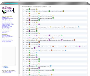iGenital.com is a website dedicated to bizarre information about a fictional sex gadget. The promise of technology is here... will it deliver? This project is a spoof of a spoof, which perhaps leads to nowhere. I hope it really sucks or at least misses the mark. Built with Indexhibit with a predilection for its defaults. Add this to your list of work safe pron. Or add this to your list of Conclusivity art. Here are some selections from the igenital.com website:
